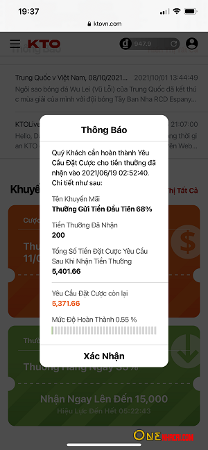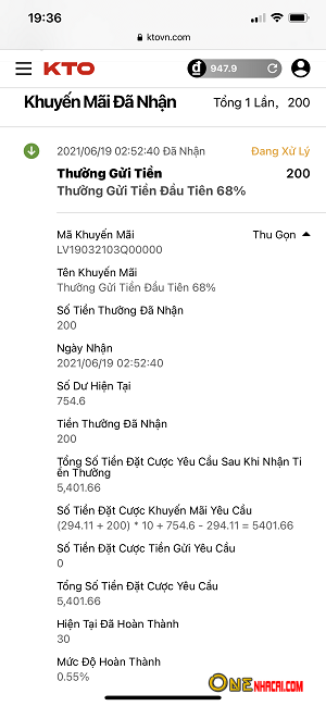 - Mỗi Yêu Cầu Đặt Cược Khuyến Mãi và Tiến Độ Hoàn Thành sẽ được tính toán và hiển thị bằng con số và phần trăm cụ thể theo thời gian thực.