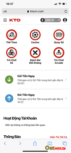 Ở KTO, giao dịch nạp/rút tiền cũng bảo đảm sự tiện lợi và nhanh chóng. Trung bình, người chơi chỉ mất 3 phút để nạp tiền và 10 phút để rút tiền sau khi thắng cược.