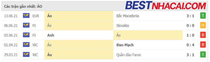 - Áo thua 3/5 trận gần nhất ở mọi sân chơi, trong những trận thua này họ đều không ghi được bàn thắng